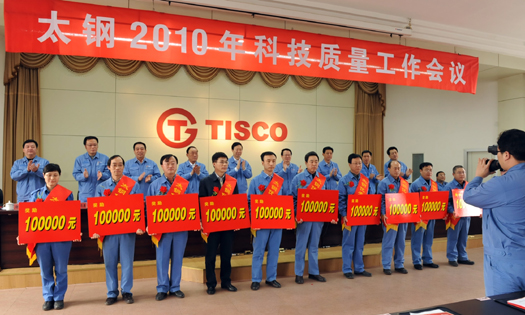 不銹鋼股份公司總經(jīng)理劉復(fù)興在會上宣讀了表彰決定。大會對2009年度重點產(chǎn)品SBU、爐料結(jié)構(gòu)優(yōu)化提質(zhì)降本SBU、質(zhì)量工作先進單位、質(zhì)量-成本最佳操作者/管理者、省部級以上科技成果、太鋼科學技術(shù)獎、優(yōu)秀科技人員進行了隆重表彰獎勵。其中,技術(shù)中心不銹鋼研發(fā)室、高級工程師李國平,技術(shù)中心物理室光電組組長、教授級高級工程師張壽祿,二鋼廠副總工程師、工程師陳景鋒,熱連軋廠生產(chǎn)技術(shù)科副科長、高級工程師趙新剛,自動化公司ERP項目組、高級工程師張長紅,設(shè)計院動力室、高級工程師王立群,裝備部工建爐窯室主任、高級工程師祁偉林,峨口鐵礦項目部、高級工程師楊運江,臨鋼技術(shù)中心、工程師陸淑娟,太鋼總醫(yī)院心內(nèi)科導(dǎo)管室主任、主任醫(yī)師王慧峰10名優(yōu)秀科技人員受到每人10萬元重獎。
